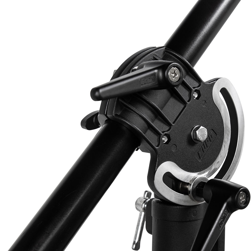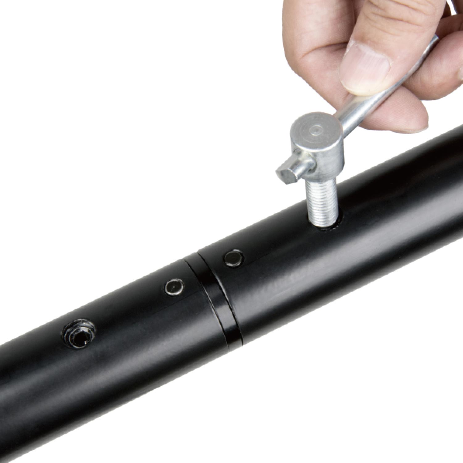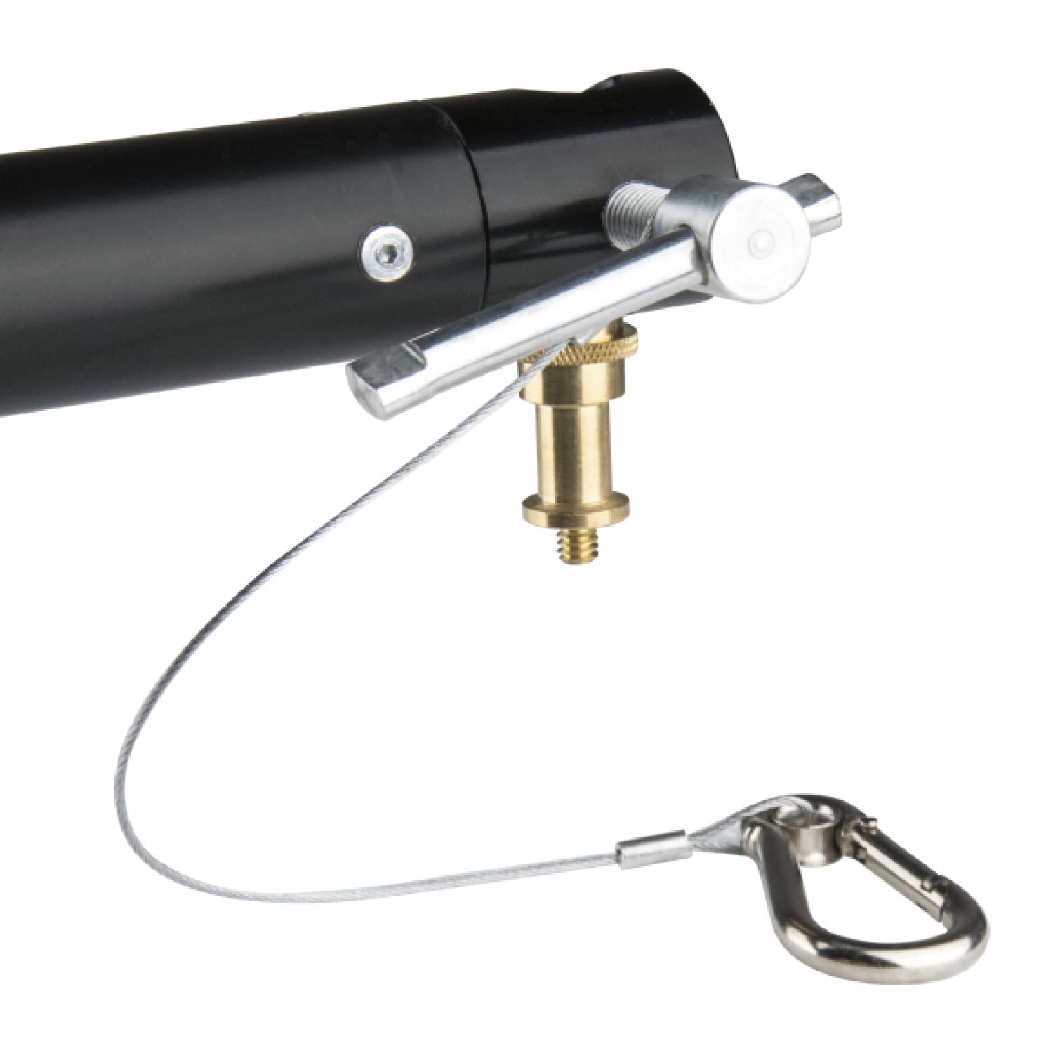 Изготовленная из трех прочных стальных секций, эта сверхпрочная перекладина может достигать длины 2,8 м и выдерживать нагрузку до 6,8 кг. Она оснащена встроенным поворотным зажимом, который обеспечивает гибкость при установке на стойку со штифтом Baby или Junior, а также ручкой с храповым механизмом для надежной фиксации. Кроме того, в комплект входит противовес (массой 4,5 кг), позволяющий сбалансировать стойку. Перекладина комплектуется стальным страховочным тросом для дополнительной безопасности. В разобранном виде длина перекладины составляет всего 93 см, это позволит удобно ее хранить и транспортировать.