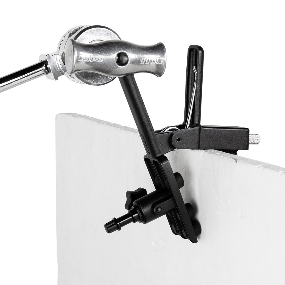Зажим KUPO KCP-550 Adjustable Gaffer Grip, изготовленный из прочного, но легкого алюминиевого сплава, представляет собой многоцелевой зажим для быстрого монтажа на различные плоские и круглые предметы. Этот зажим является усовершенствованной версией стандартного пружинного зажима и отличается повышенной прочностью. Зажим оснащен несъемным штифтом 5/8", приемным отверстием 5/8" (16 мм) и комплектуется двусторонним адаптером 5/8" (16 мм) с винтами 1/4" и 3/8". Резиновые накладки на губках предотвращают повреждения предметов. Рабочий ход зажима регулируется винтом с накаткой и составляет от 25 до 65 мм.