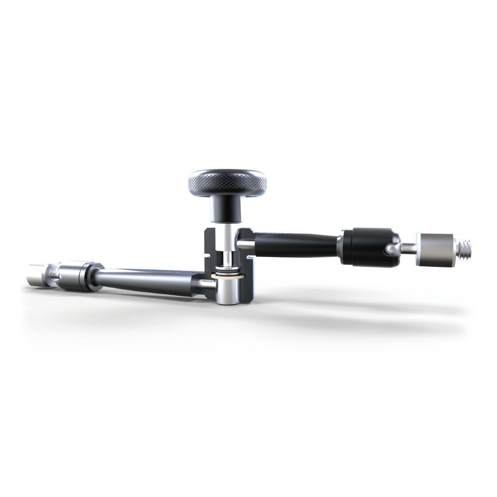 KUPO KCP-110 10" ROCK'S ARM - универсальный и прецизионно изготовленный шарнирный кронштейн длиной 25,4 см (10"), выдерживающий нагрузку до 8 кг и предназначенный для установки мониторов, рекордеров, светодиодных осветительных приборов и микрофонов на операторских ригах. Фрикционное колесо надежно фиксирует положение кронштейна и позволяет контролировать натяжение шарниров, что делает манипулятор удобным и комфортным в эксплуатации. Головки кронштейна вращаются на 360 градусов, а паз во втулке позволяет наклонить головку на 90 градусов, обеспечивая множество положений установки. На одном конце расположена головка с наружной резьбой 1/4"-20, а на другом - головка с наружной резьбой 3/8"-16. Головки изготовлены из нержавеющей стали и служат для крепления различных принадлежностей. Уникальный конический механизм зацепления обеспечивает плавную регулировку шарнира даже при натяжении. Головки с наружной резьбой являются съемными и крепятся на шаровом основании с помощью шестигранного ключа, такое решение может быть полезным для отсоединения и присоединения некоторых устройств.
